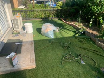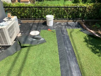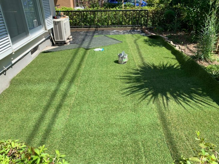 | お客様のご要望 | 塗装工事終了後に、庭の人工芝も敷いて欲しいとご依頼頂きました。 |