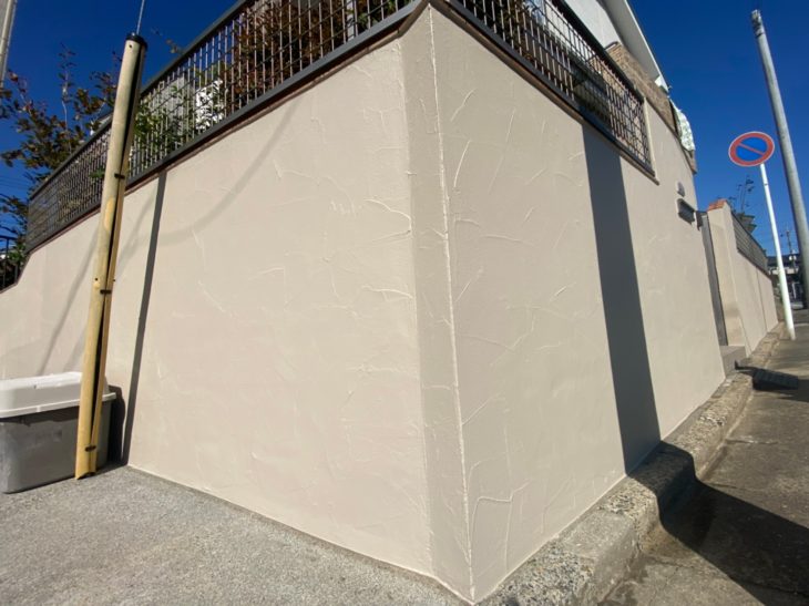 | お客様のご要望 | 塀の汚れが気になるとの事で塗装のご依頼を頂きました。「こんなに丁寧にやって頂けるとは思っていませんでした!」と喜びのお言葉を頂けました。 |