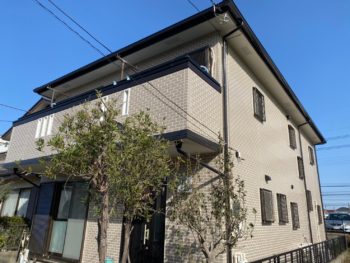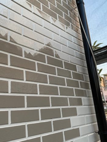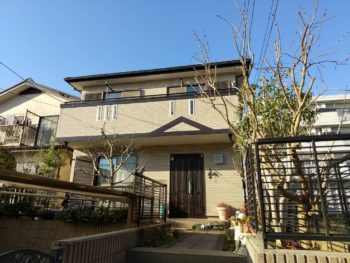 | お客様のご要望 | 屋根外壁の塗装を依頼いただきました。塗りつぶしでは安っぽくなってしまいますので、タイル調のガラを出させて頂きました。塗分けは作業は大変ですが、周りの住宅との高級感の差別化・お客様の笑顔の為に頑張りました。 |