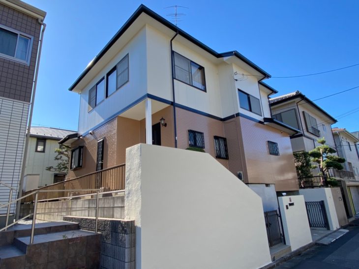 | お客様のご要望 | 二回目の工事依頼のお客様です。前回は13年前に塗装させて頂きました。やはりジョイントのコーキングや屋根の劣化が目立ちました。その都度しっかりと一番良いと思われる材料及び施工方法で作業していますが、反省点や良かった所など、色々と確認が出来またのでとても為になりました。一回目の塗装工事の際には気が付けなかった、新築時からの不良個所などに今回は気が付く事ができ、しっかりと補修出来たので良かったです。が、まだまだ自分の為にも、お客様の為にも日々勉強が必要だと痛感致しました。 |
