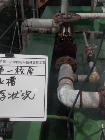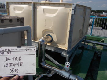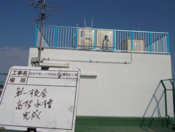 | お客様のご要望 | 今回は地中にあった受水槽が古くなったので、校舎脇に新設し、屋上の高架水槽2か所を撤去し新設するという工事内容でした。 小学校内での作業なので児童、先生、保護者への安全配慮と学校行事に支障がでないように工程を組み進行していく必要がありました。 |